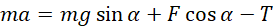 Siła T jest siłą tarcia, czyli iloczynem współczynnika tarcia i siły nacisku (bilansu sił prostopadłych do równi)