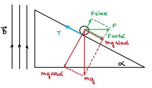 W tym zadaniu należy dokonać bilansu sił, które oznaczyliśmy na rysunku.