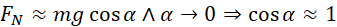 Kąt nachylenia równi dąży do zera, zatem siła składowa wynikająca z siły elektrodynamicznej jest pomijalnie mała, gdyż w okolicy zera sinus jest zerem, natomiast cosinus jedynką, zatem:
