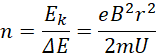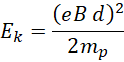 Przyrost energii kinetycznej w przejściu między duantami wynika z różnic potencjałów: