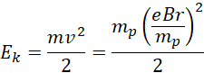 Aby obliczyć maksymalną energię kinetyczną, korzystamy z klasycznego wzoru na energię kinetyczną, podstawiając za prędkość obliczoną wyżej wartość: