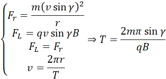 Siła dośrodkowa jest spełniona przez siłę Lorentza i dodatkowo v jest prędkością z ruchu po okręgu.