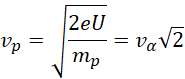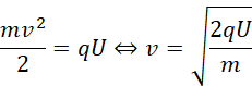 Cząstki zostały przyspieszone tą samą różnicą potencjałów, zatem energia pochodząca od ładunku i napięcia jest energią kinetyczną: