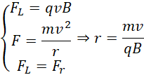Siła Lorentza pełni rolę siły dośrodkowej, zatem: