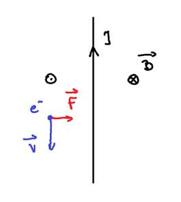 W tym zadaniu należy wskazać kierunek i zwrot siły działającej na elektron.