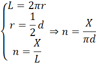 Z zależności wzorów na długość koła, wiedzy, że średnica jest podwojonym promieniem oraz tego, że liczba nawinięć to całkowita długość drutu podzielona przez długość jednego nawinięcia, otrzymujemy;