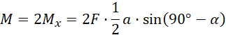 Siła występuje parzyście, tak więc moment siły powodujący obrót ramki pochodzi od podwojonej siły. Dodatkowo wiemy, że z płaszczyzną ramki, euklidesowe wyobrażenie linii pola magnetycznego tworzy arbitralny kąt α, zatem: