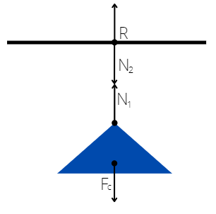 Z 3 zasady dynamiki mamy, że jeśli ciało A działa na ciało B pewną siłą, to ciało B działa na ciało A siłą o takim samym kierunku i wartości, lecz przeciwnym zwrocie. Ważne jest, by siły miały takie same kierunki i wartości, lecz były skierowane w górę lub w dół.