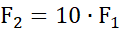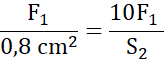 Siła wywierana na większy tłok jest 10 razy większa od tej wywieranej na mniejszy tłok: