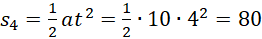 c) W czasie czterech pierwszych sekund samochód przejedzie 50, a w ciągu czwartej sekundy 20.