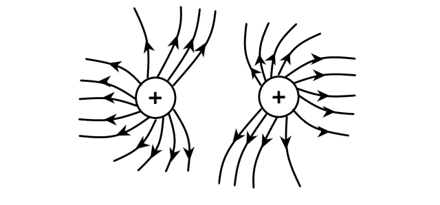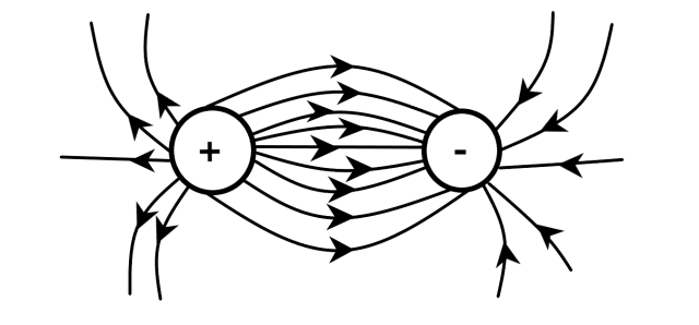 Linie pola elektrostatycznego zawsze wychodzą z plusa, a wchodzą do minusa.