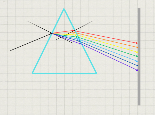 Światło białe zawiera wszystkie barwy, dlatego po przejściu przez pryzmat ulega rozszczepieniu.