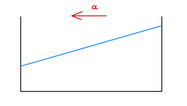 Zwrot przyspieszenia pociągu w lewo, ponieważ siła bezwładności zadziałała na wodę w prawo.
