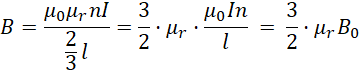 Po dołożeniu rdzenia wiemy, że solenoid został ściśnięty o 1/3 poprzedniej długości, zatem jego ostateczna długość wynosiła 2/3 starej długości: