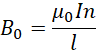 Indukcja magnetyczna solenoidu bez rdzenia przedstawia się tak: