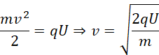 Różnica potencjałów nadaje atomowi energii kinetycznej, więc: