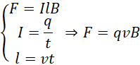 Korzystając z definicji natężenia, długości zależnej od prędkości i czasu oraz wzoru na siłę elektrodynamiczną: