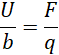 Natężenie pola elektrycznego może być wyrażone jako iloraz napięcia i odległości (w tym przypadku b) oraz iloraz siły i ładunku – w każdym sposobie wyrażenia natężenie to musi być sobie równe: