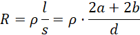 Korzystając z materiałowego prawa Ohma, rozpisz opór: