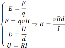 W tym zadaniu musimy przedstawić natężenie pola elektrycznego w dualny sposób, sytuacyjnie dopasowując je jako iloraz siły elektrodynamicznej i ładunku oraz iloraz napięcia (które uzyskujemy z prawa Ohma) do odległości. Siła elektrodynamiczna to nic innego jak iloraz ładunku, prędkości i indukcji magnetycznej pola.