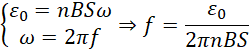 Ramka obraca się, zatem SEM indukcji zmienia się sinusoidalnie, ale do rozwiązania tego zadania nie będzie nam potrzebny cały sinusoidalny przebieg zmian pewnych wartości, lecz konkretne wartości maksymalne, tj. maksymalna SEM indukcji oraz częstość kołowa jako podwojone Pi pomnożone przez częstotliwość. Dodatkowo pod uwagę należy wziąć, że skoro na ramkę nawinięto n zwojów, to każdy zwój zwiększa maksymalną SEM indukcji zatem: