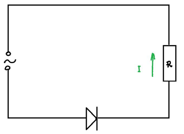 Dioda blokuje przepływ prądu przez połowę okresu.