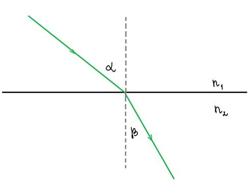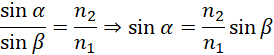 W rozwiązaniu skorzystamy z prawa Snelliusa: