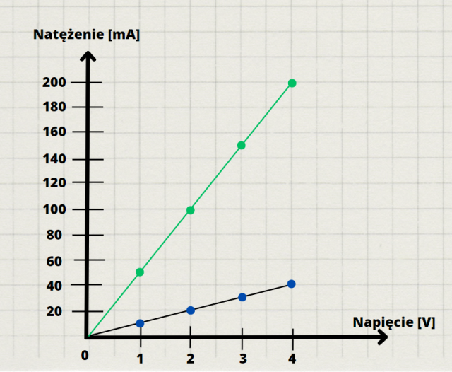 Wykres w przybliżeniu będzie przebiegać jak linia prosta. Im większe natężenie prądu, tym większe również będzie jego napięcie.