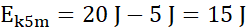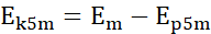Energia mechaniczna jest stała na każdej wysokości, dlatego na wysokości 5 metrów energia kinetyczna jest równa: