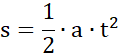 , gdzie s to droga, a – przyspieszenie, t – czas.