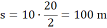 Droga hamowania to będzie pole pod wykresem v(t). Będzie to pole trójkąta prostokątnego o bokach 10 i 20.