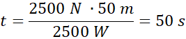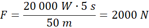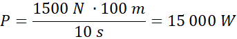 | Siła F [N] | Przesunięcie (droga) s [m] | Czas t [s] | Moc P [W] |