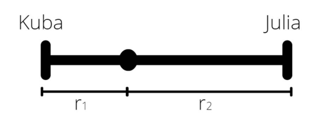 to długości ramion huśtawki. Przekształć ten wzór, by otrzymać wyrażenie na długość ramienia, przy którym siedzi Kuba.