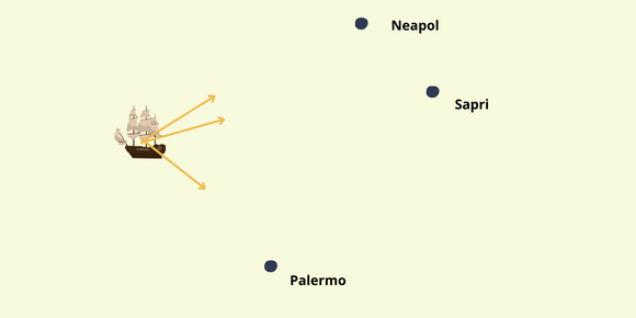 W tym zadaniu musisz narysować wektory prędkości żaglowca, który płynie w kierunku podanych miast.