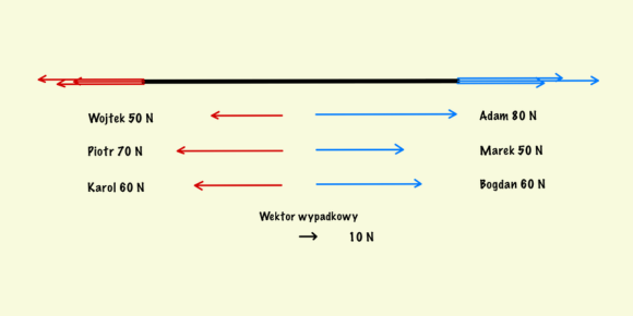 W tym zadaniu musisz powiedzieć, kto wygra podczas przeciągania liny. Narysuj rysunek, który przedstawia wektory sił, którymi działają chłopcy.