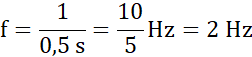, gdzie f to częstotliwość drgań w hercach, a T to okres drgania w sekundach.
