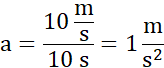 Prędkość w ciągu jednej sekundy wzrasta o jeden metr na sekundę.