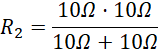 Opór x jest wynikiem cząstkowego wyliczenia równoległego połączenia dwóch oporów o wartości 10Ω i wynosi on 5Ω.