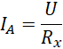 Natężenie na amperomierzu można uzyskać, stosując prawo Ohma: