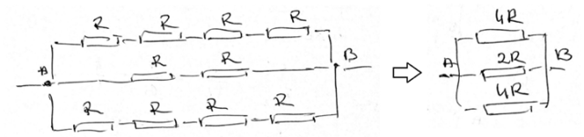 Otrzymujemy układ trzech oporników połączonych równolegle i korzystamy z