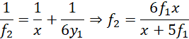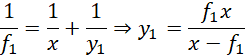 Położenie przedmiotu x się nie zmienia. Wyliczamy, korzystając z równania zwierciadła, zależność określającą odległość obrazu dla pierwszego zwierciadła: