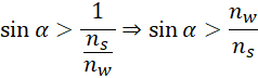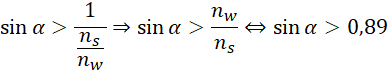Dla opisanego przypadku zjawisko całkowitego wewnętrznego odbicia będzie występowało, gdy: