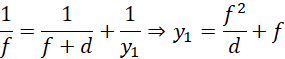Pierwszą, gdy przedmiot stoi w odległości d = 2 cm za ogniskiem, zatem jego odległość od soczewki wynosi x = d+f, korzystając z tej informacji, używamy równania soczewki: