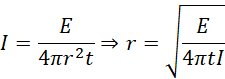 Z definicyjnego wzoru na natężenie fali kulistej wyznaczamy zależność opisującą promień zasięgu, promień ten jest odległością, z jakiej mierzono to natężenie: