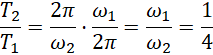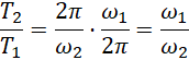 Reprezentujemy okres jako iloraz podwojonej stałej pi i częstości drgań: