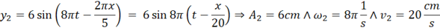 Przekształcamy wzory funkcyjne i odczytujemy z nich wartości, porównując z ogólnym wzorem funkcji fali płaskiej: