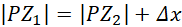 Szukana odległość to suma znanej odległości i przesunięcia Δx: