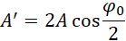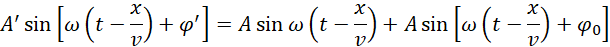 Amplituda fal o wskaźnikach 1 i 2 jest taka sama i fala o wskaźniku dwa jest przesunięta względem 1 o fazę, zatem możemy rozpisać powyższe równanie, korzystając z równania funkcyjnego fali płaskiej: