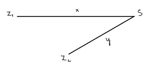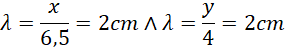 Na odcinku x mieści się 6,5 długości fali, na odcinku y mieszczą się 4 długości fali.