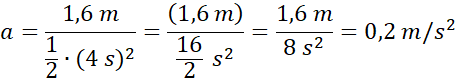, gdzie s to droga, a – przyspieszenie, t – czas. Musisz tak przekształcić wzór na drogę, by otrzymać wyrażenie na przyspieszenie. Dopiero wtedy możesz wyliczyć prędkość. Nie musisz pisać delty przy prędkości, ponieważ prędkość początkowa jest równa 0 i obliczona wartość prędkości będzie prędkością końcową.